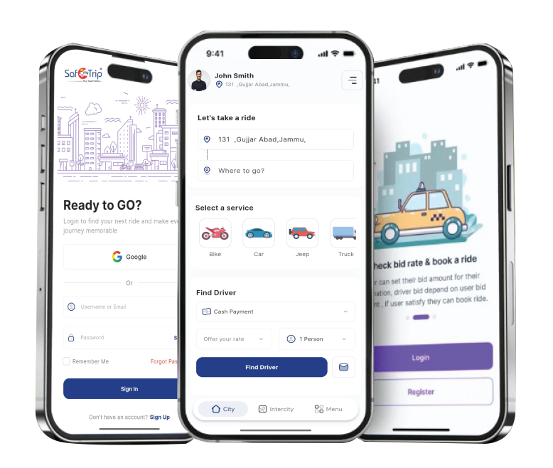 Riders enter their trip details, and drivers submit competitive bids. Riders can compare offers based on price and ratings.